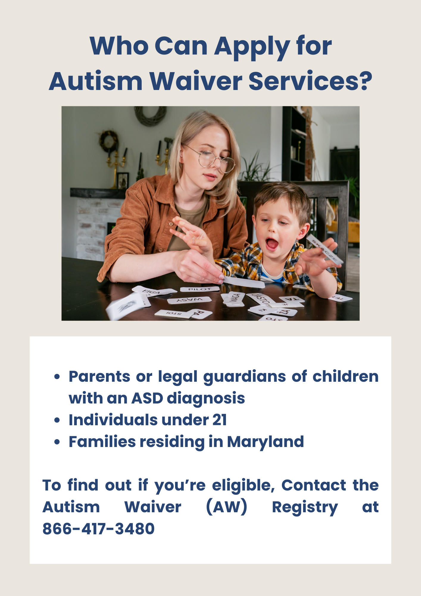 If you live in Maryland, it's important to know about the Maryland Autism Waiver. While all autism waiver programs have the same general goal, the specifics like who can get it (eligibility for autism waiver), how to apply, and what services for autistic children Maryland are offered can be a little different from other states. So, if you're in Maryland, focusing on information about the Maryland Autism Waiver program is the best way to go.